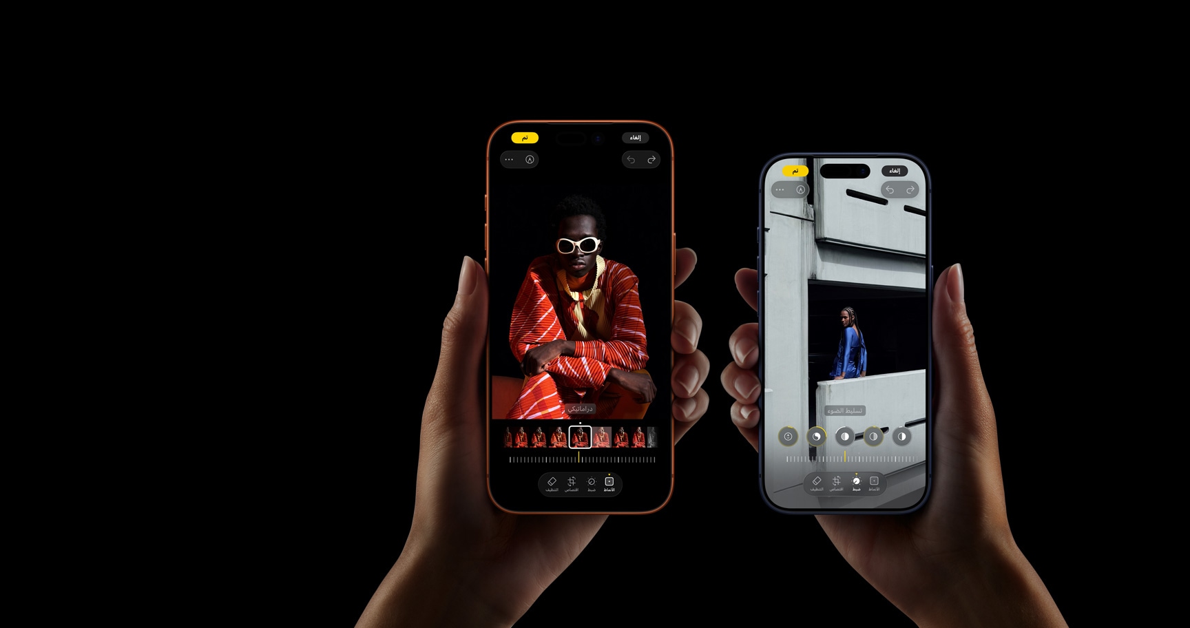 اختر من بين أنماط متنوعة مضبوطة مسبقاً، بما في ذلك نمط "ساطع" الجديد، وخصص درجات صورك وألوانها وأجواءها على ذوقك.