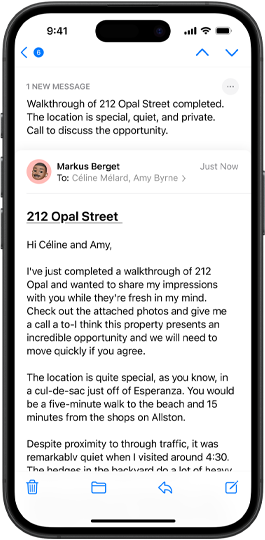 Use a Smart Reply in Mail to quickly draft an email response with all the right details. Apple Intelligence can identify questions you were asked in an email and offer relevant selections to include in your response. With a few taps you’re ready to send a reply with key questions answered.
