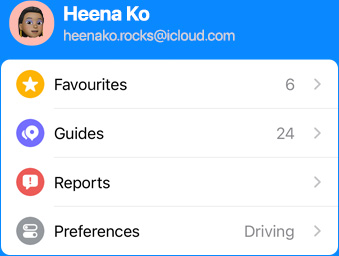Open Maps and tap your user account photo at the bottom of the screen to see your most used settings — like preferred mode of transport, reported issues and favourites — all in one place. And when you open Maps on your devices or on your dashboard with CarPlay, it displays the places you visit most — so you’re always just a tap away from home, work, the gym, your kid’s school, the nearest service station or your favourite restaurant.
