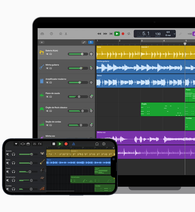 Produza música e refine o áudio com ferramentas inteligentes para criar batidas, compor e remixar. Agora parte do Apple Creator Studio.