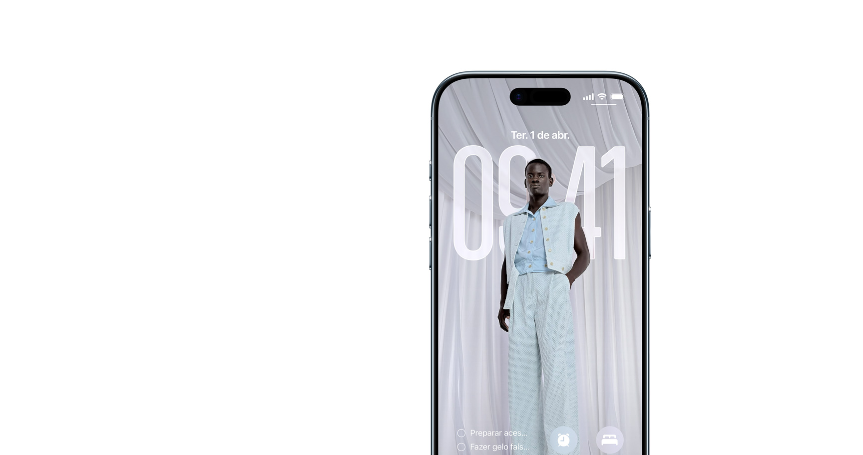 As horas se adaptam dinamicamente à imagem de fundo e às notificações, mantendo a pessoa ou objeto em destaque. Quando você move o iPhone, o novo efeito 3D muda a perspectiva da imagem15.