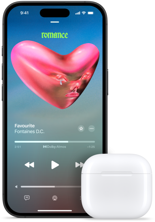 Personalized Spatial Audio with dynamic head tracking3 places sound all around you, creating a three-dimensional listening experience for music, TV shows, movies, games and more.