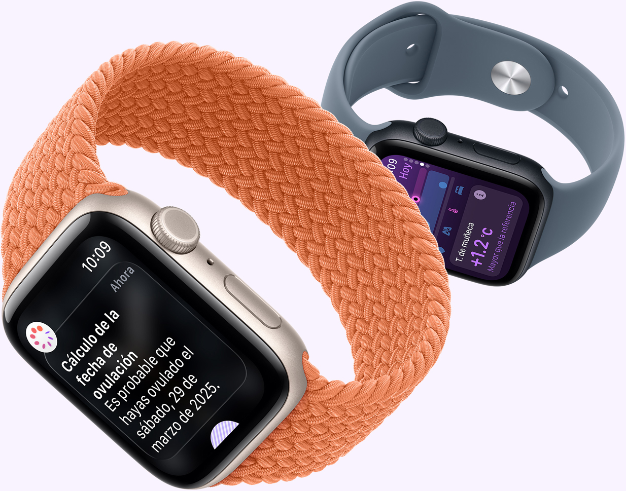El Apple Watch SE 3 cuenta con sensores avanzados que registran la temperatura de tu muñeca mientras duermes.1 La app Control del Ciclo usa esta información para calcular ovulaciones anteriores, algo que puede ser útil para la planificación familiar.9