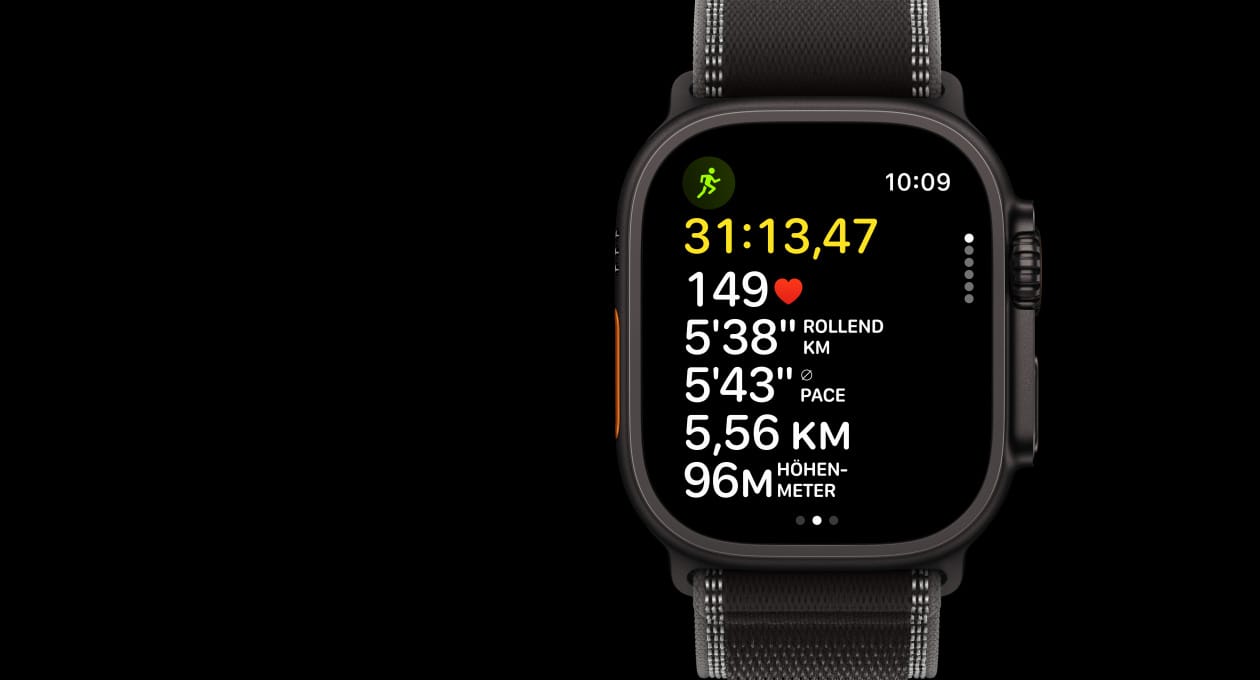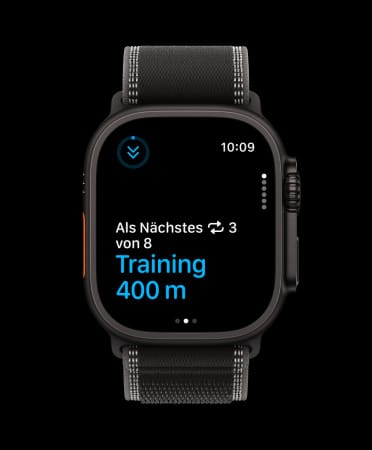 Du möchtest während der Fahrt deine aktuelle Geschwindigkeit checken? Mit Trainingsansichten hast du deine ausgewählten Messwerte im Blick, sodass du sie einfach verfolgen kannst. Und wenn du zwischen Messwerten wie Herzfrequenz-Zonen, Rundenzeiten und Höhenmetern wechseln möchtest, drehe einfach die Digital Crown.