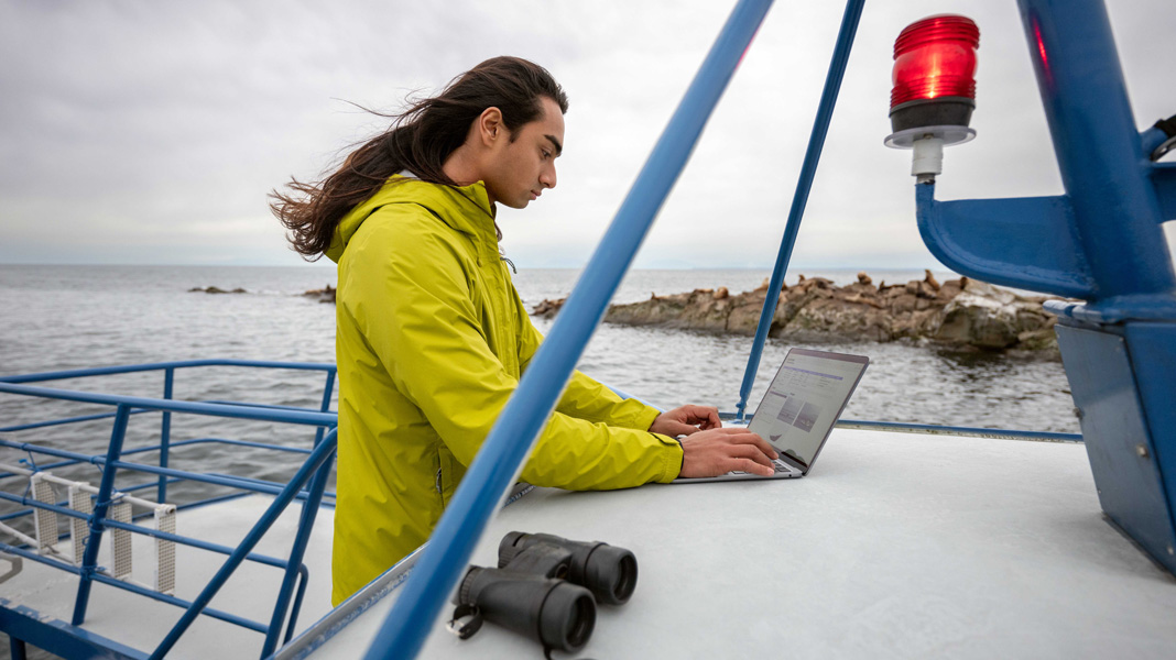 Apple technology also helps Bodhi conduct and synthesize his university research — like illustrating the impacts of marine vessel activity on the endangered Southern Resident Killer Whale population in the Salish Sea. Taking his MacBook Air, iPhone, and binoculars, he tackles the project’s fieldwork out on the water. He charts whale sightings by using Numbers and Keynote to create flowcharts and density maps that show where the locations intersect with popular ferry routes — helping to identify potential disturbances on resident whale populations. And on iPhone, he takes compelling photos and videos that document his findings.