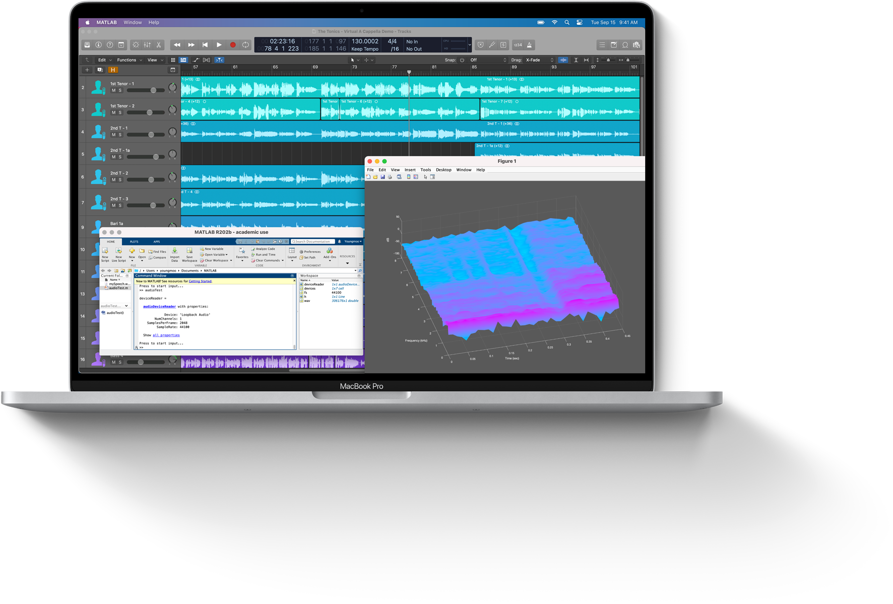 MacBook Pro. Mac easily handles pro music and visualization apps — like Logic Pro and MATLAB — to push the boundaries of Dr. Kim’s machine listening research using instruments and robots he builds himself.