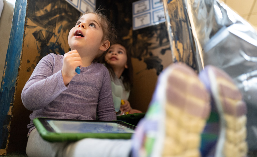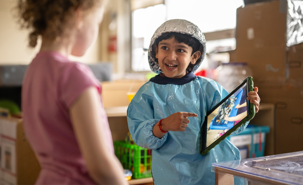 «Los alumnos utilizan el iPad para compartir con todo el grupo: se hacen responsables de lo que aprenden», explica Kristin Malone, profesora del programa STEAM en el Stowe. «Creo que mucha gente no entiende todo de lo que son capaces los preescolares. Cuando les hablas como si fueran adultos y los tratas con el respeto que merecen, es increíble lo que pueden hacer.»