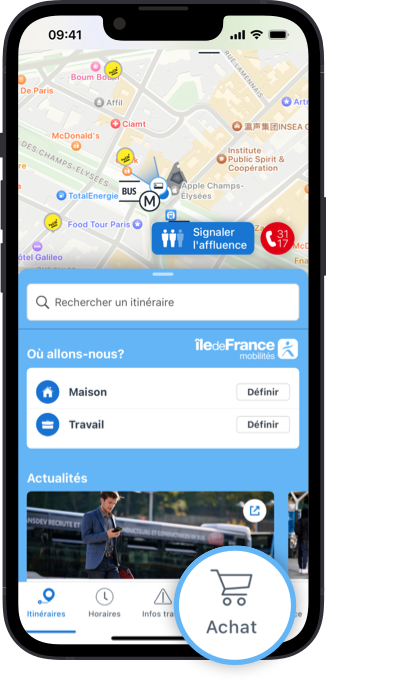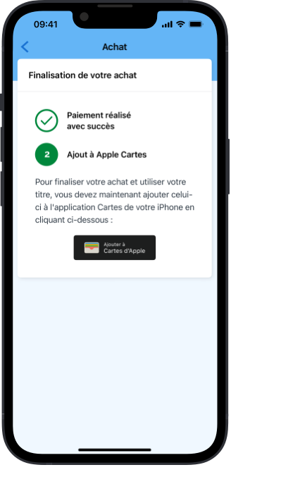 Achetez vos tickets ou forfaits Jour dans Cartes. Ouvrez l’app Cartes, appuyez sur « + » et suivez les indications pour ajouter votre nouveau Navigo à l’app Cartes.