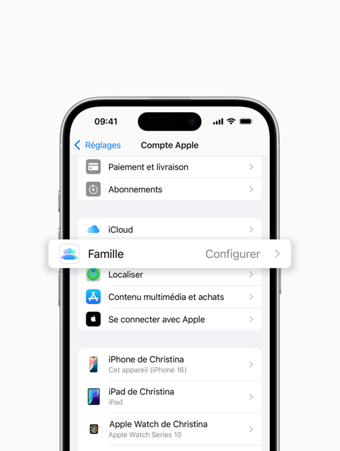 Découvrez nos conseils et nos idées d’utilisation des fonctionnalités familiales. Ouvrez Réglages, touchez votre nom, Famille, puis Recommandations pour votre famille.