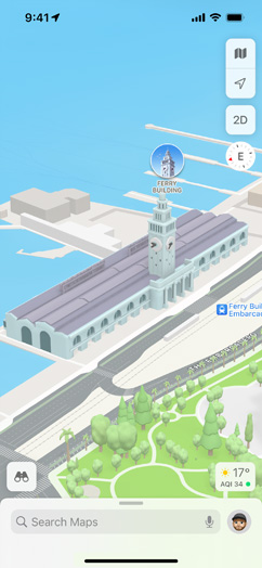 Update to iOS 15, iPadOS 15, and macOS Monterey to get the latest Maps features, including the interactive globe, 3D experiences for cities like San Francisco, Los Angeles, New York, and London, nearby transit, and more.