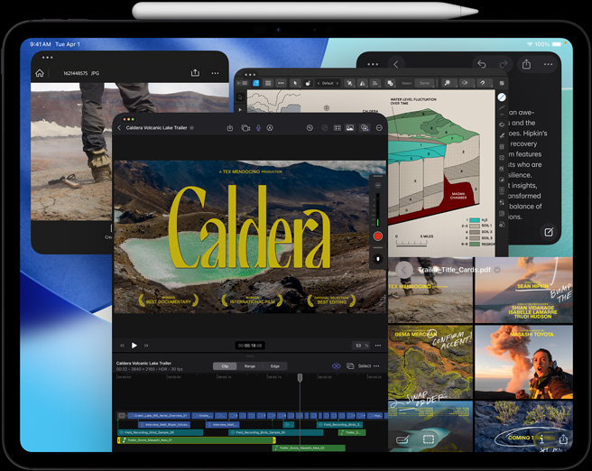 Zahvaljujući sustavu Pro kamera s LiDAR skenerom, mikrofonima studijske kvalitete i četiri zvučnika, možeš snimati, uređivati i dijeliti sadržaje na istom uređaju. Snimi 4K ProRes videozapis ili podcast te odaberi odgovarajući mikrofon za svaku aplikaciju pomoću birača ulaza.