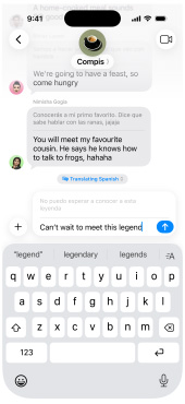 Turn on Live Translation to automatically translate texts in Messages,1 display live translated captions in FaceTime and get spoken translations for calls in the Phone app.2