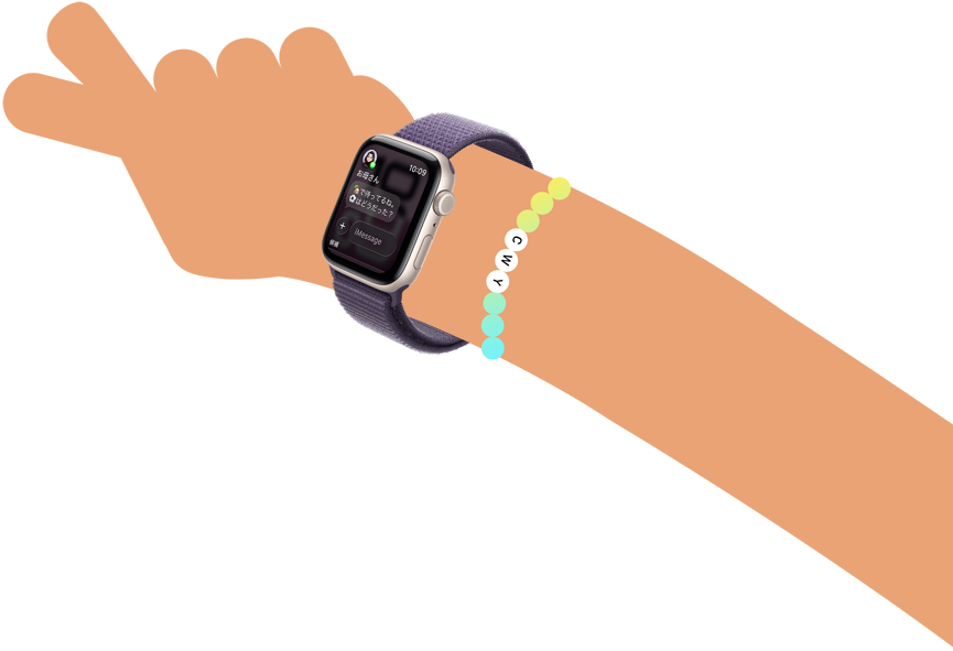 たった1回のタップ、スワイプ、あるいは音声入力。メッセージアプリからテキストを送るのに必要なのは、それだけです。さらに、iPhoneでカスタマイズしたチャット画面の背景がApple Watchにも表示されるので、グループチャットがますます個性的に。