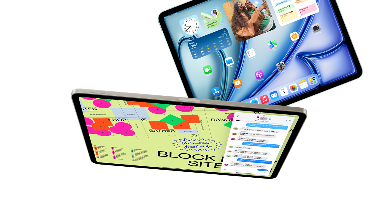 iPad Air is built for Apple Intelligence. The lightning-fast M3 chip brings breakout performance to iPad Air. With a powerful CPU, GPU, and Neural Engine, it’s up to 2x faster than iPad Air with M1 chip.4 The GPU architecture brings advanced graphics whether you’re working, streaming, creating, or gaming. All with amazing efficiency for all‑day battery life.5