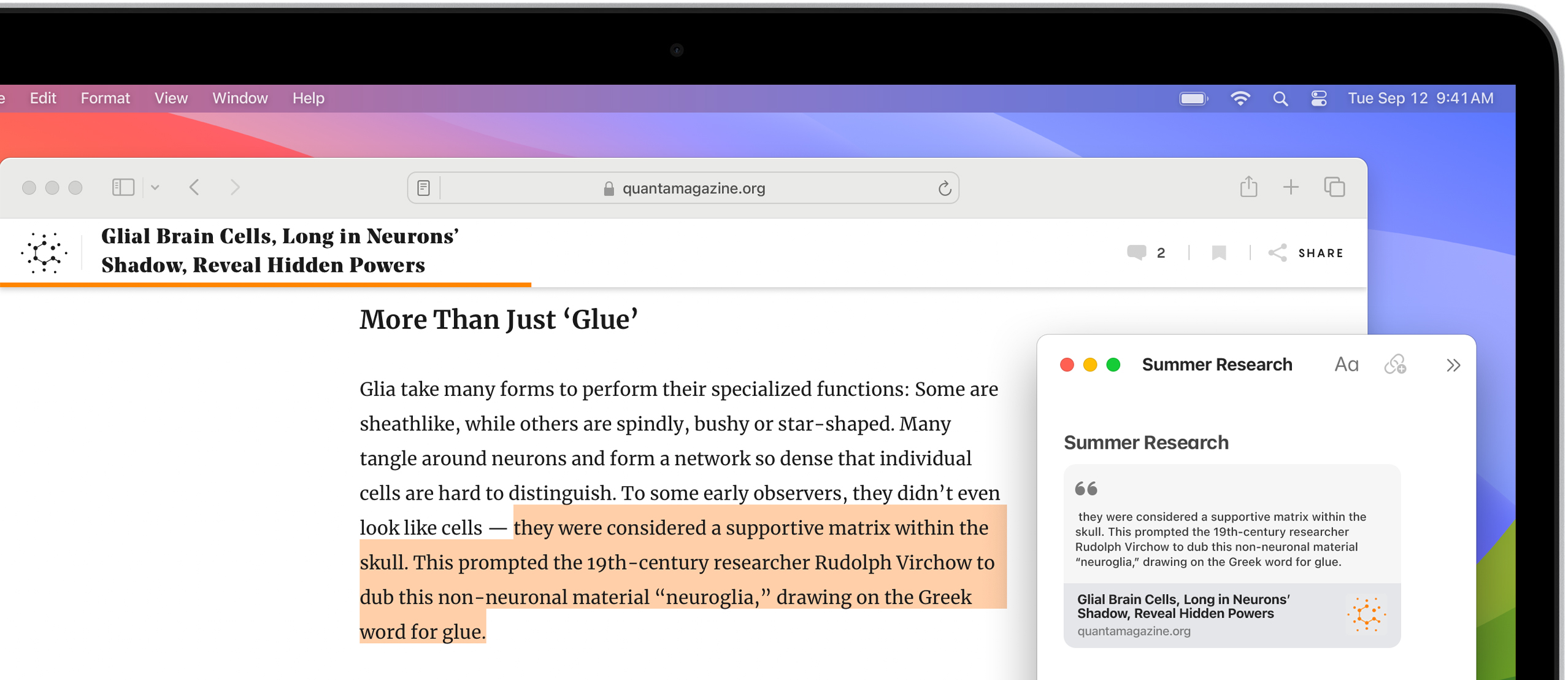 WebKit está profundamente integrado entre el hardware de la Mac y macOS, por lo que Safari puede alcanzar la mayor velocidad de rendimiento y duración de la batería en comparación con cualquier otro navegador en la plataforma. Además, es compatible con estándares web modernos para disfrutar experiencias de navegación increíbles. WebKit en macOS Sequoia optimiza la navegación para que tu experiencia sea aún mejor, y da a los desarrolladores más control sobre el estilo y el diseño para crear contenidos más atractivos.