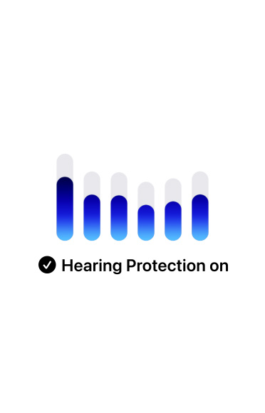 Kopā ar pasīvu trokšņu mazināšanu, ko nodrošina austiņu uzgalīši, aktīvā dzirdes aizsardzība palīdz pasargāt no skaļiem apkārtējiem trokšņiem. Mašīnmācīšanās funkcija H2 čipā mazina troksni 48 000 reižu sekundē, vienlaikus saglabājot dabisku un dzīvīgu skaņu neatkarīgi no tā, ko tu klausies.18