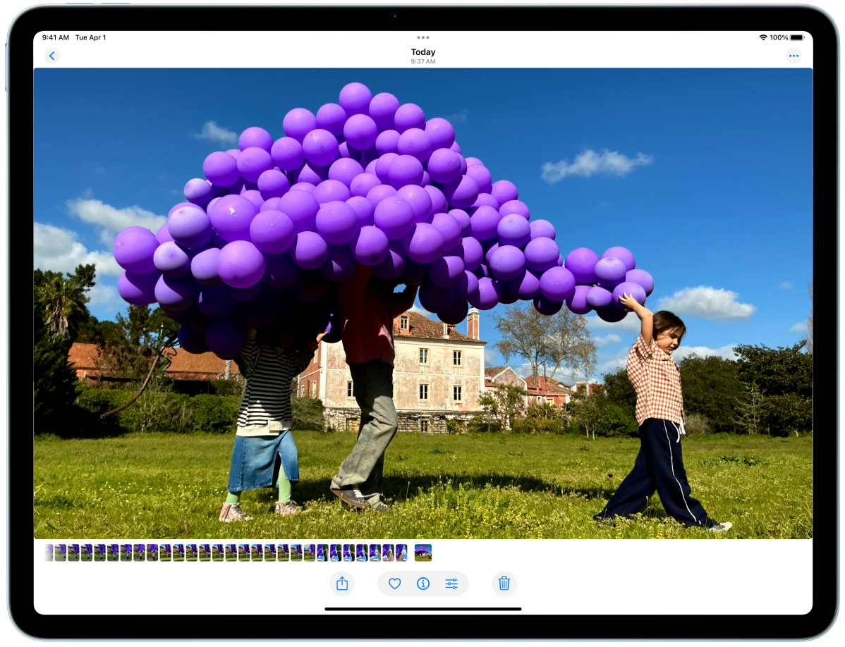 橫向的 iPad Air 展示 Apple Intelligence 配搭相片 app 的清除工具