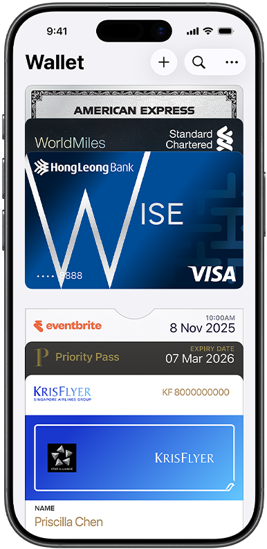 Set up in seconds. Directly on your iPhone. Apple Pay is built into iPhone, Apple Watch, Mac and iPad. To get started on iPhone, open the Wallet app and tap the plus symbol. Then add a credit or debit card by tapping the back of your iPhone with your eligible card.1 You’ll have the option to add your card to your other devices at the same time. When you want to pay, just double-click, tap and you’re set. You still earn your card’s rewards and benefits — so you won’t miss out on any points or miles.