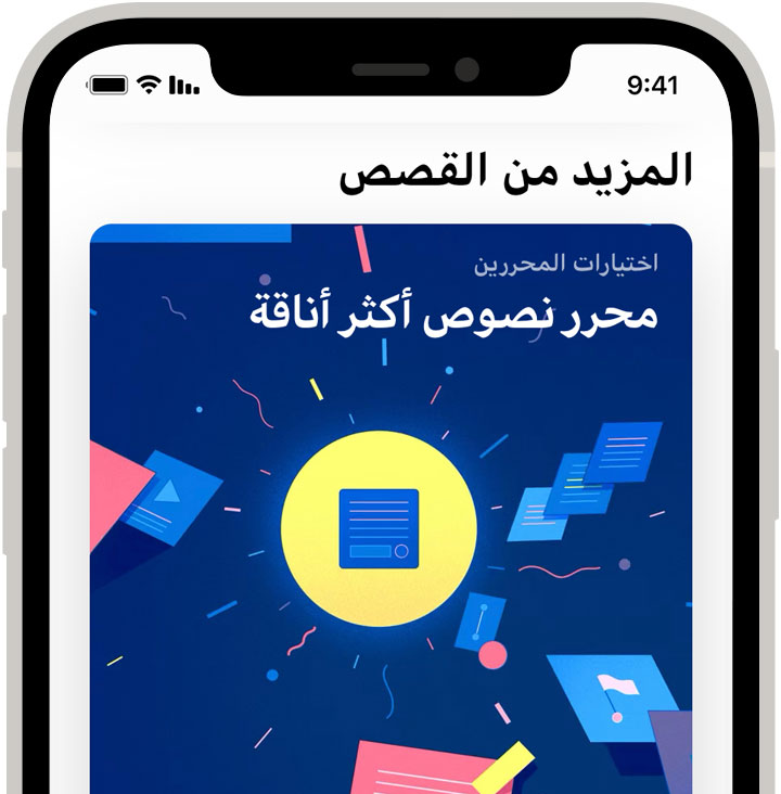 مع آلاف التطبيقات التي تُضاف إلى App Store كل أسبوع، ستجد دوماً شيئاً جديداً لتستكشفه. ولمساعدتك في العثور على التطبيقات والقصص والألعاب التي تعجبك، يقدم لك فريق من محررينا اقتراحات مخصصة تستند إلى ما تفضله أنت وإلى مشترياتك السابقة.
