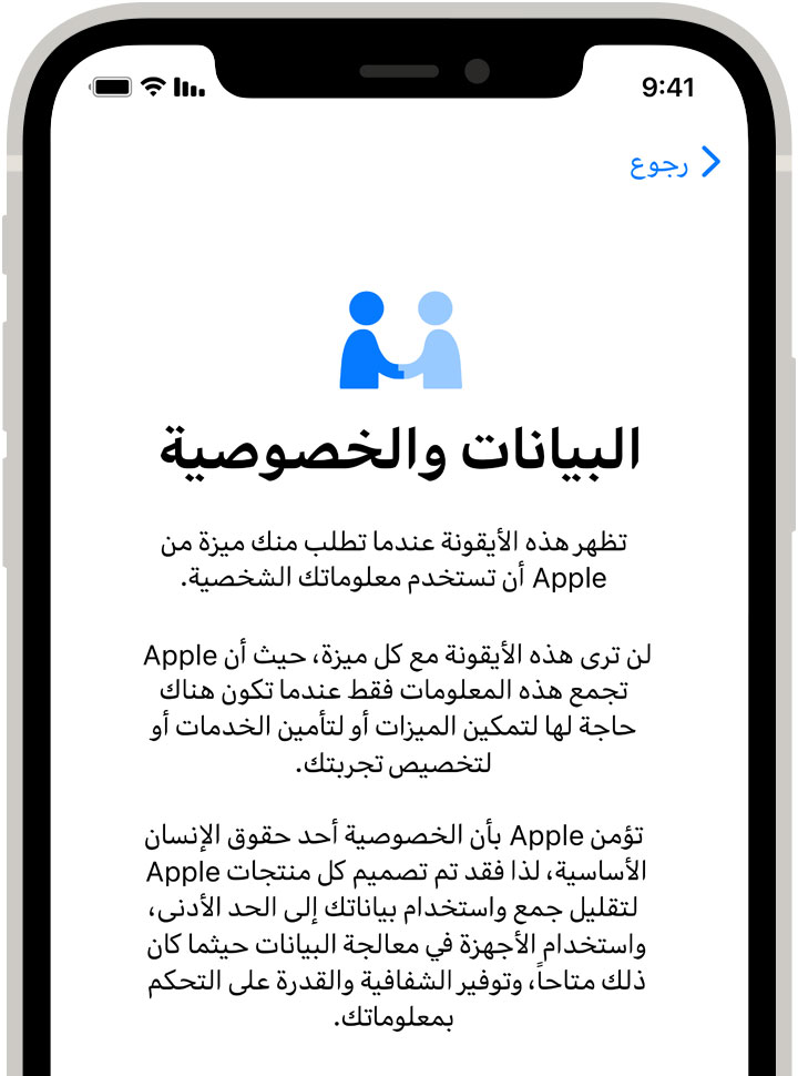 يُشترط على كل تطبيق الحصول على إذنك لتختار أنت البيانات التي تودّ مشاركتها، إذ يصلك إشعار عندما ترغب تطبيقات المطورين الآخرين للمرة الأولى في الوصول إلى معلوماتك، مثل موقعك أو جهات اتصالك أو تقويماتك أو صورك. وحتى إذا منحت إذن الوصول لمرة، يمكنك رفضه لاحقاً. كما نحرص على إبقاء أنواع معينة من البيانات الحساسة على جهازك بعيدة كلياً عن متناول التطبيقات، ونحرص على ألا تجري هذه التطبيقات أي تغيير على جهازك أو نظام التشغيل، ونمنعها أيضاً من الوصول الشامل إلى بياناتك.