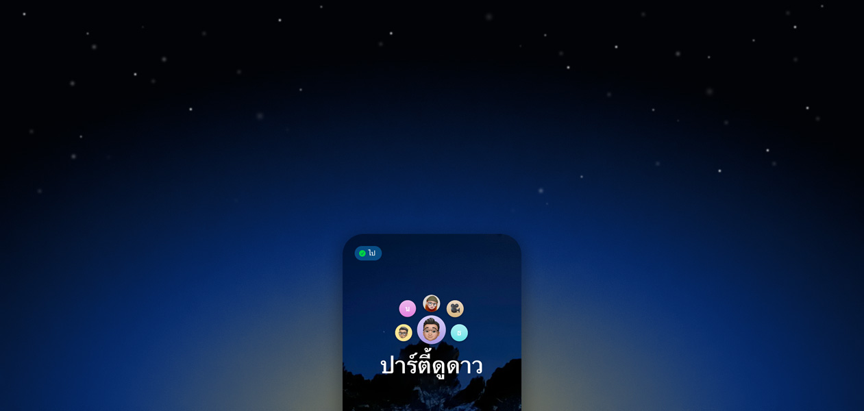 วิดีโอหรือเสียง แล้วแชร์ หน้าจอหรือใช้ SharePlay เพื่อฟังเพลงด้วยกัน ดูทีวี และ อีกมากมาย ใช้ได้กับ