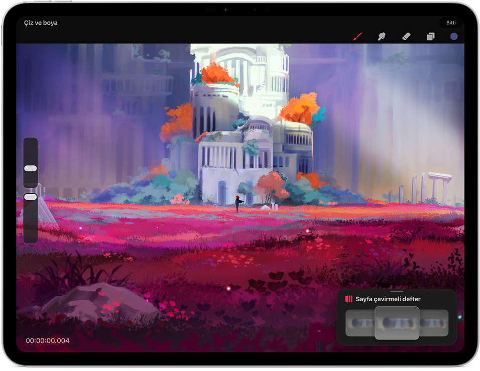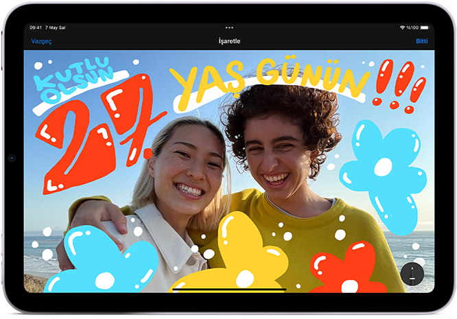 Apple Pencil çizim yapmanın, not almanın ve belgeleri işaretlemenin nasıl bir deneyim olması gerektiğiyle ilgili standartları belirliyor. Sezgisel, hassas ve sihirli. Ayrıca mükemmel piksel hassasiyeti, düşük gecikme süresi, eğime duyarlılık ve temas seçici teknoloji desteği gibi özelliklere sahip. Apple Pencil’ı kullanmak ve ilham geldiğinde onunla fikirlerinizi hayata geçirmek inanılmaz kolay.