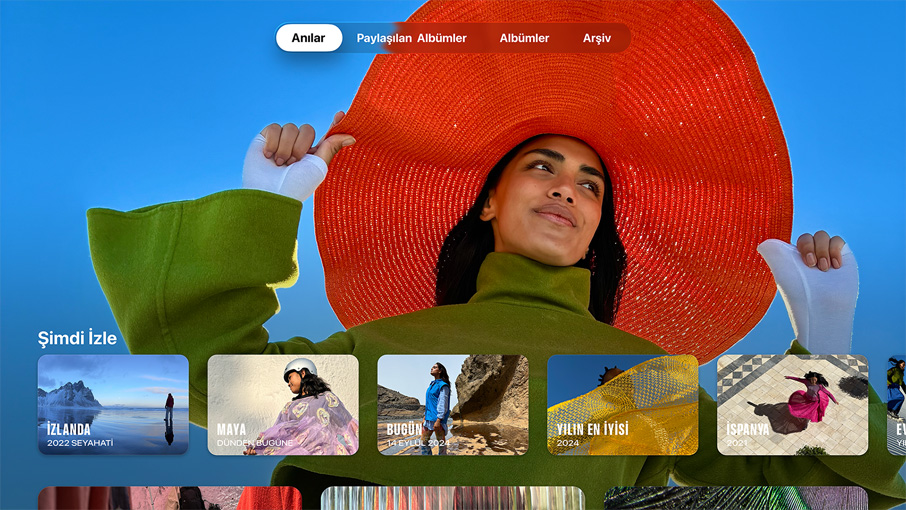 Fotoğraflar. iCloud Paylaşılan Fotoğraf Arşivi, ailenizdeki herkesin diğer aile üyelerinin fotoğraflarına erişmesini kolaylaştırıyor. Üstelik tüm bu içerikleri TV’nizde görüntüleyebiliyorsunuz. Ve Anılar’ı ekran koruyucunuz olarak seçebiliyor, en güzel anlarınızın büyük ekranda hayat bulmasını izleyebiliyorsunuz.