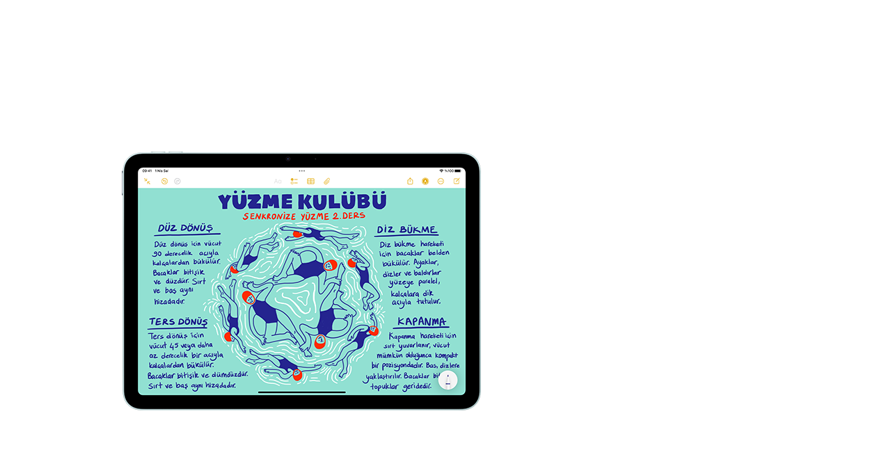 Apple Pencil çizim ve resim yapmanın, elle yazmanın ve not almanın nasıl bir deneyim olması gerektiğiyle ilgili standartları belirliyor. Kullanıcı dostu, hassas ve sihirli. Ayrıca mükemmel piksel hassasiyeti, düşük gecikme süresi ve eğime duyarlılık gibi üstün özelliklere ve temas seçici teknoloji desteğine sahip. Ve Apple Pencil Pro, yaratıcı fikirlerinizi hayata geçirmeniz için eşi benzeri olmayan yetenekler sunuyor.3