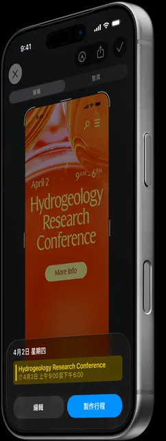 動作按鈕。 帶你一鍵直達可自訂的常用功能。長按即可啟動你想要的操作,如「靜音模式」、「翻譯」、「捷徑」等。
