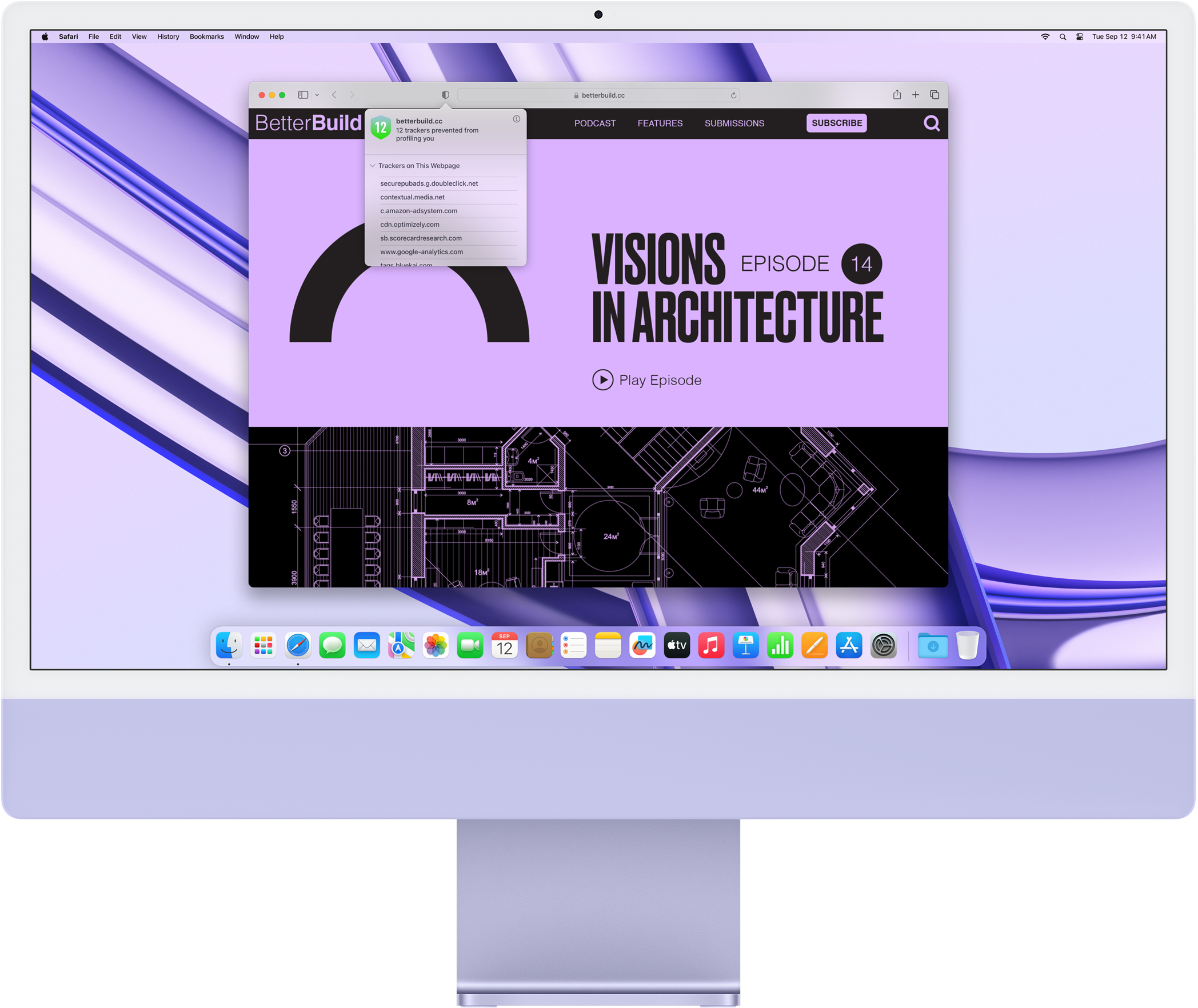 想要查看 Safari 是如何在你瀏覽網站時保護你的隱私,非常簡單。在你上網時,點按 Safari 選單中的「隱私權報告」按鈕,就能快速一覽試圖對你建檔分析而已遭防堵的跨網站追蹤器。或者,你也能查看每週「隱私權報告」,了解 Safari 如何確保你瀏覽時的安全。