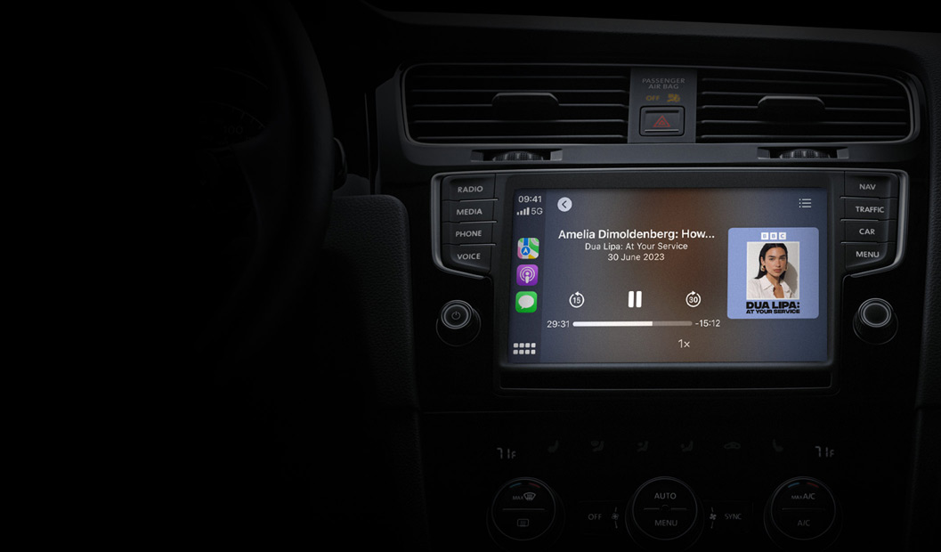 CarPlay lets you listen seamlessly from your iPhone in your car, bringing the same in‑depth experience to your vehicle’s built‑in controls.2 You can even ask Siri to play the latest episode or control playback. And Apple Podcasts comes pre-installed in selected car models.