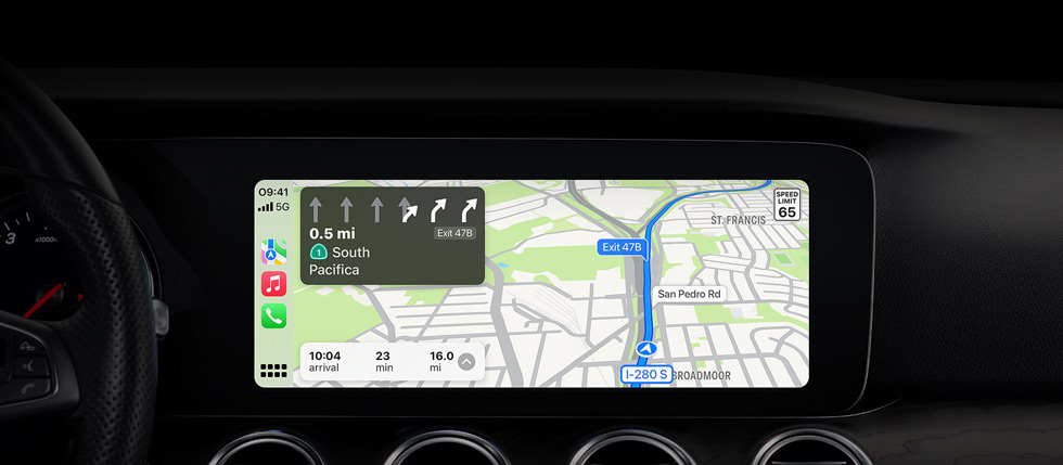 CarPlay brings the power and simplicity of Maps behind the wheel. It can make intelligent suggestions based on data you already store on your device, like addresses from your email, text messages, contacts and calendars. And with a detailed map, turn‑by‑turn spoken directions and immersive 3D experiences, it’s easier than ever to get where you need to go.